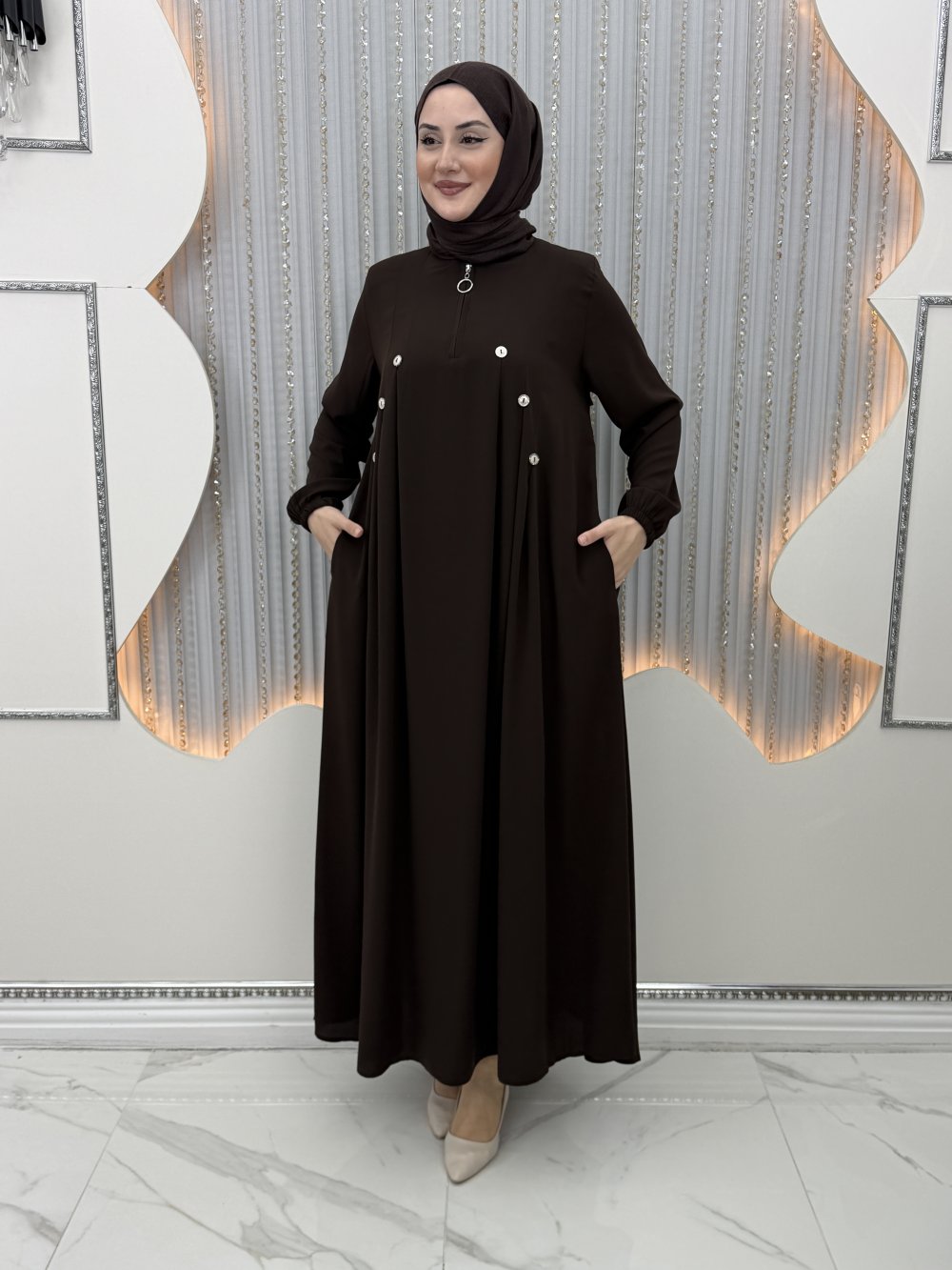 3 Düğme Elbise Kahverengi