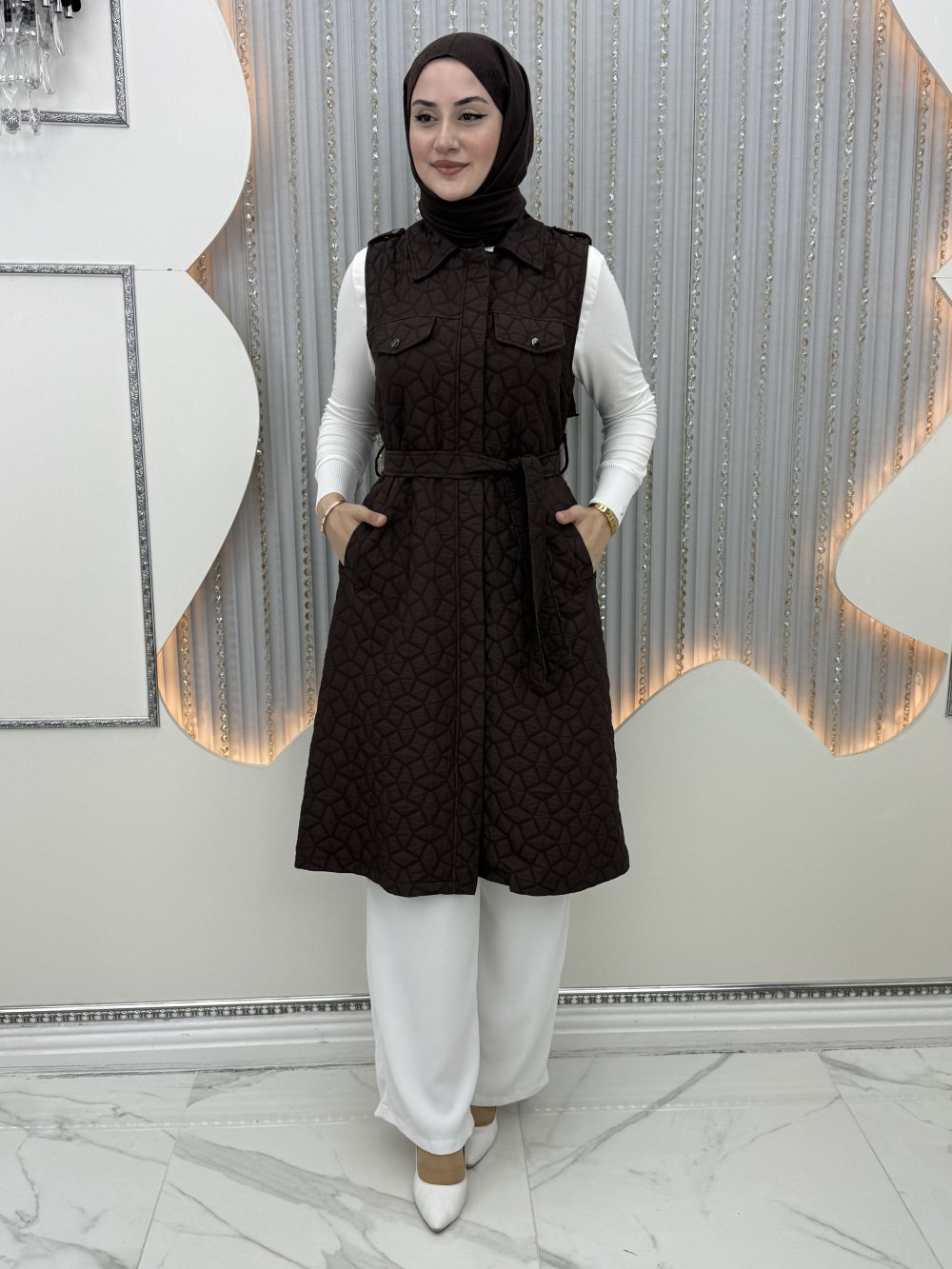 Alin Kapitone Yelek Kahverengi