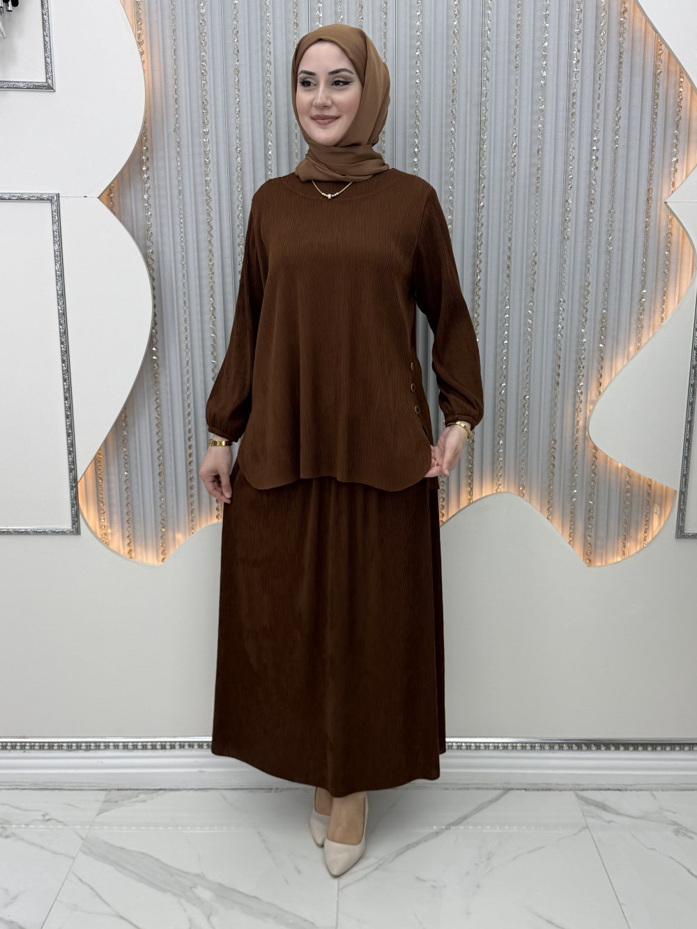 Bilsen Etekli Takım Kahverengi