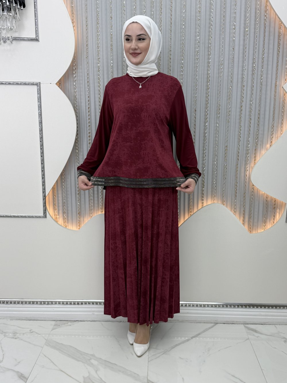 Gece Etekli Takım Bordo