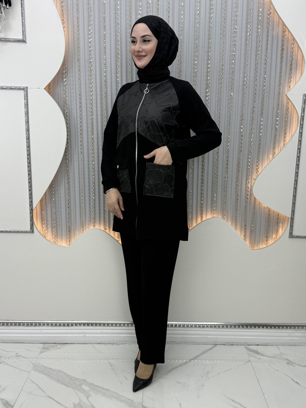 Hazel Pantolonlu Takım Siyah