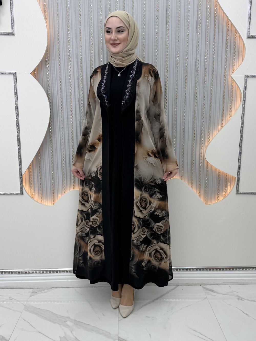 Yaka taş detaylıdır