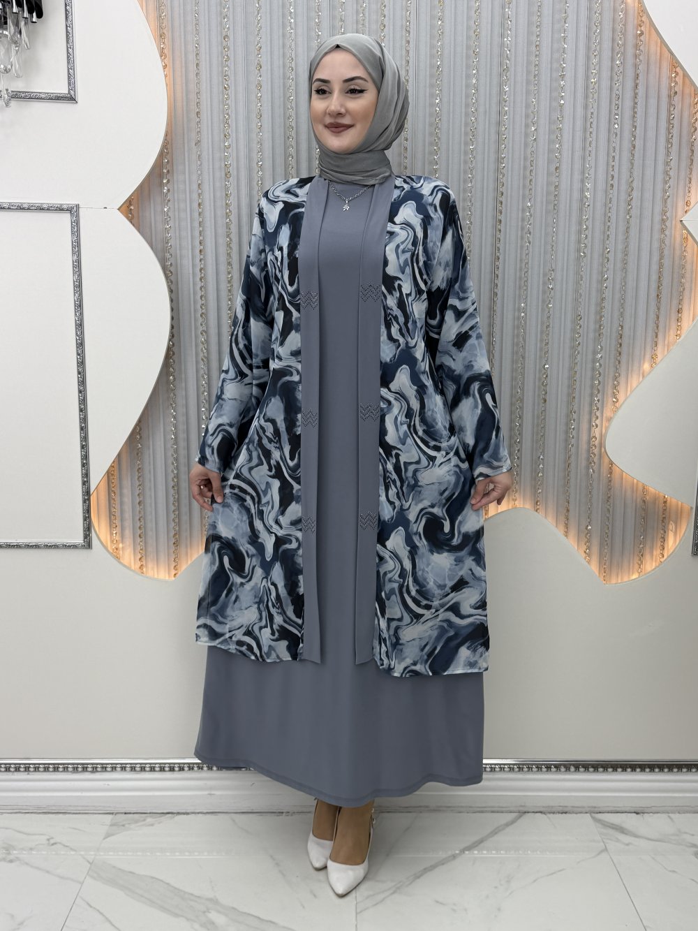 Kardelen Elbiseli Hırka Gri