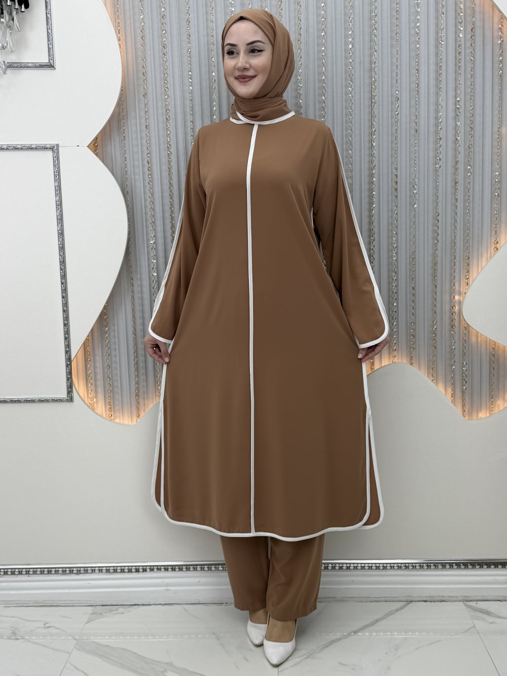 Meryemce Pantolonlu Takım Vizon