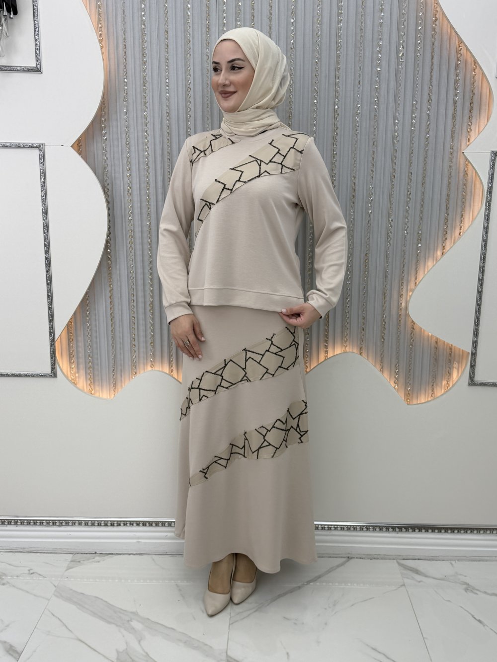 Nilda etekli takım Krem