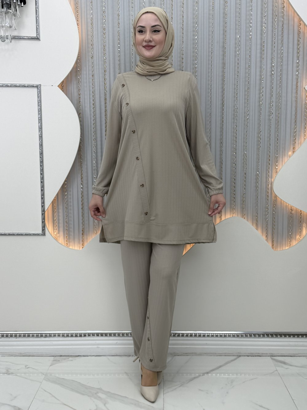 Nilsu Pantolonlu Takım Krem