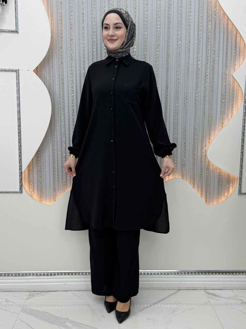 Rozalin Pantolonlu Takım Siyah