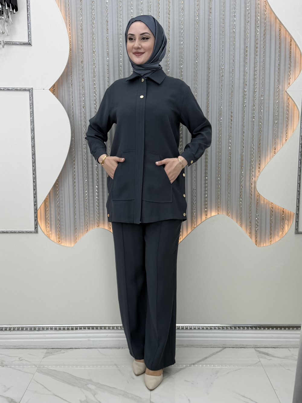 Sahra Pantolonlu Takım Antrasit