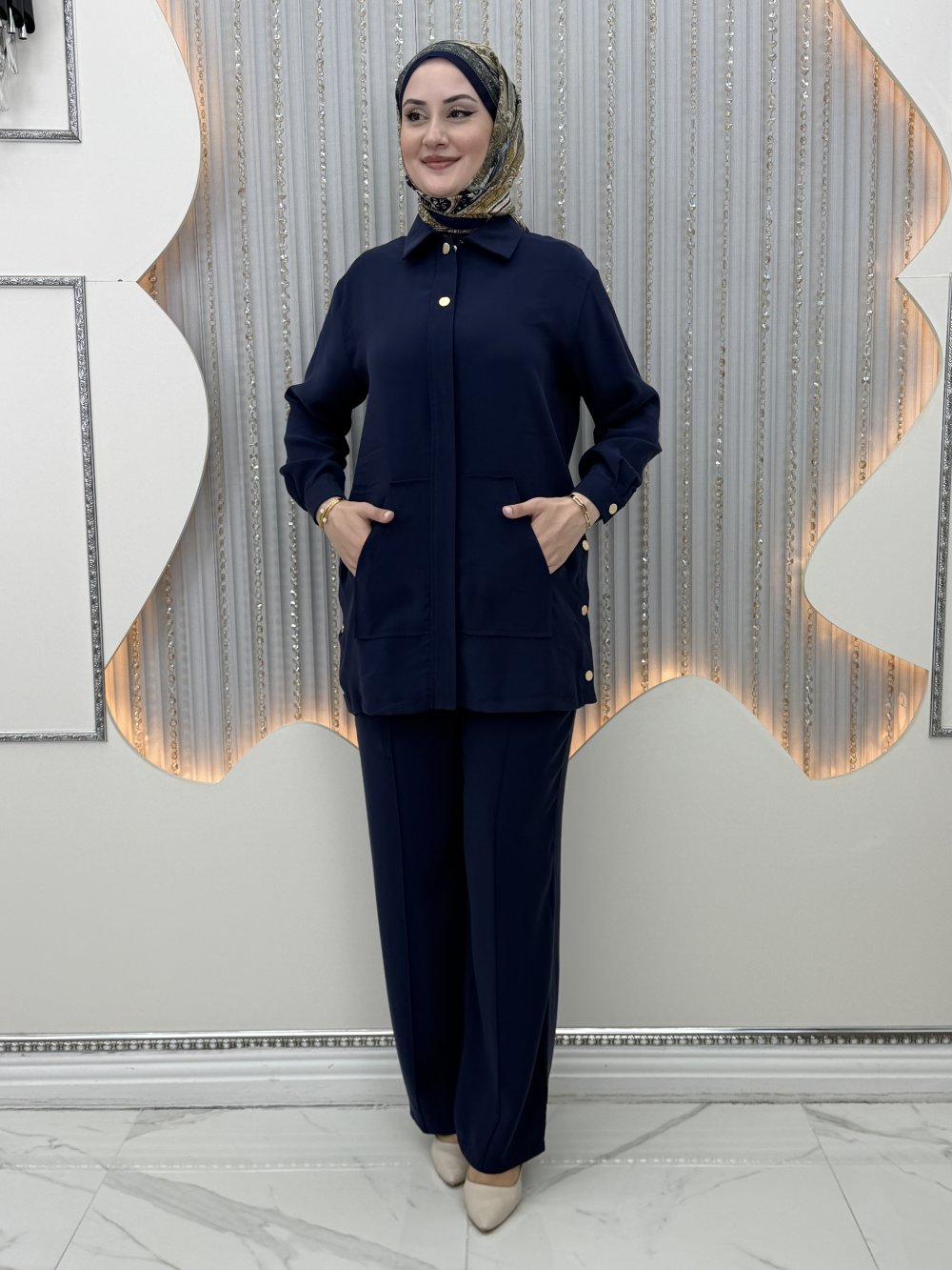 Sahra Pantolonlu Takım Lacivert