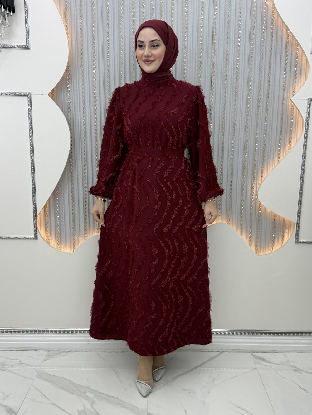 Selma elbise Bordo