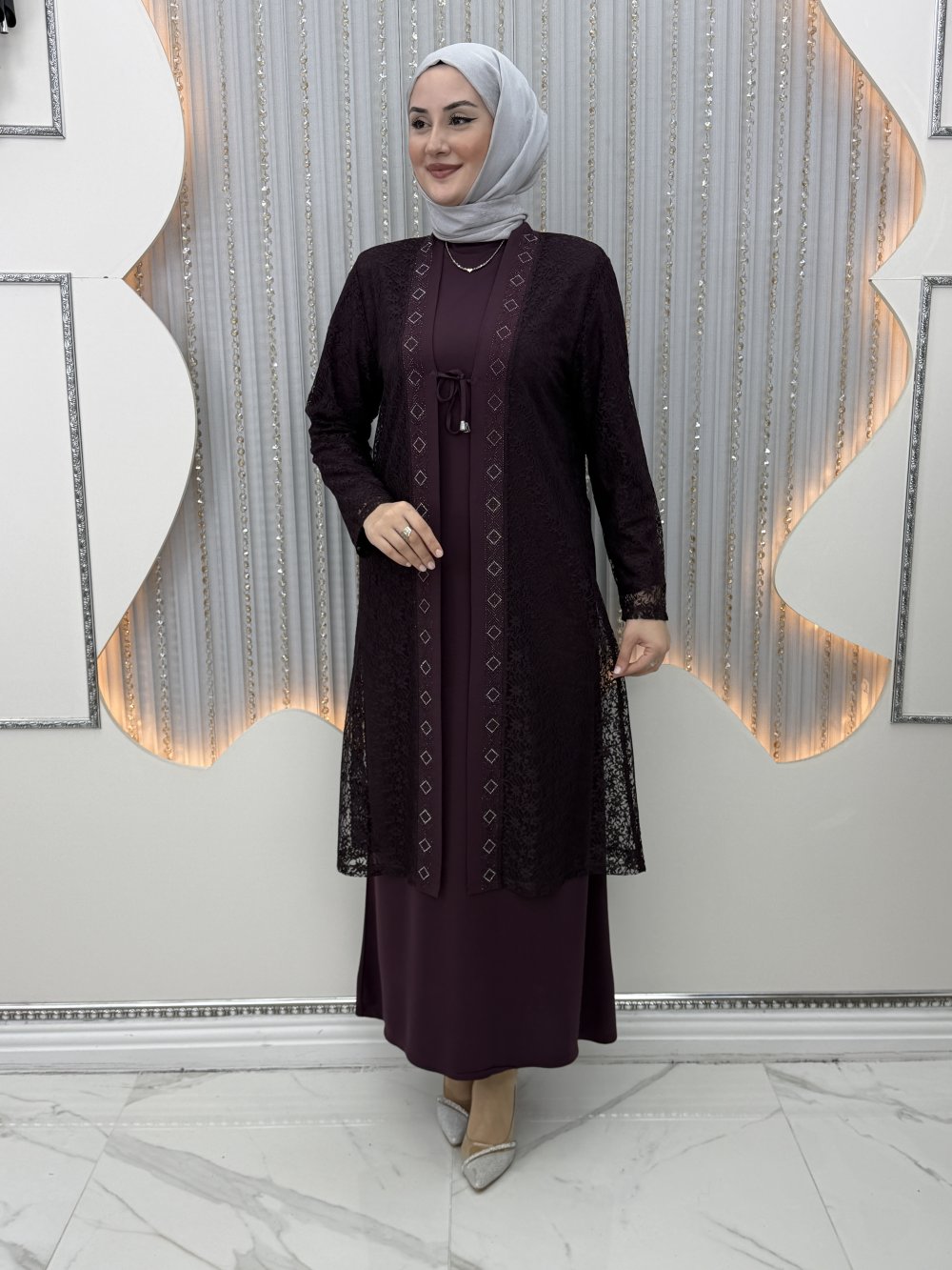 Serin Elbiseli Hırka Mor