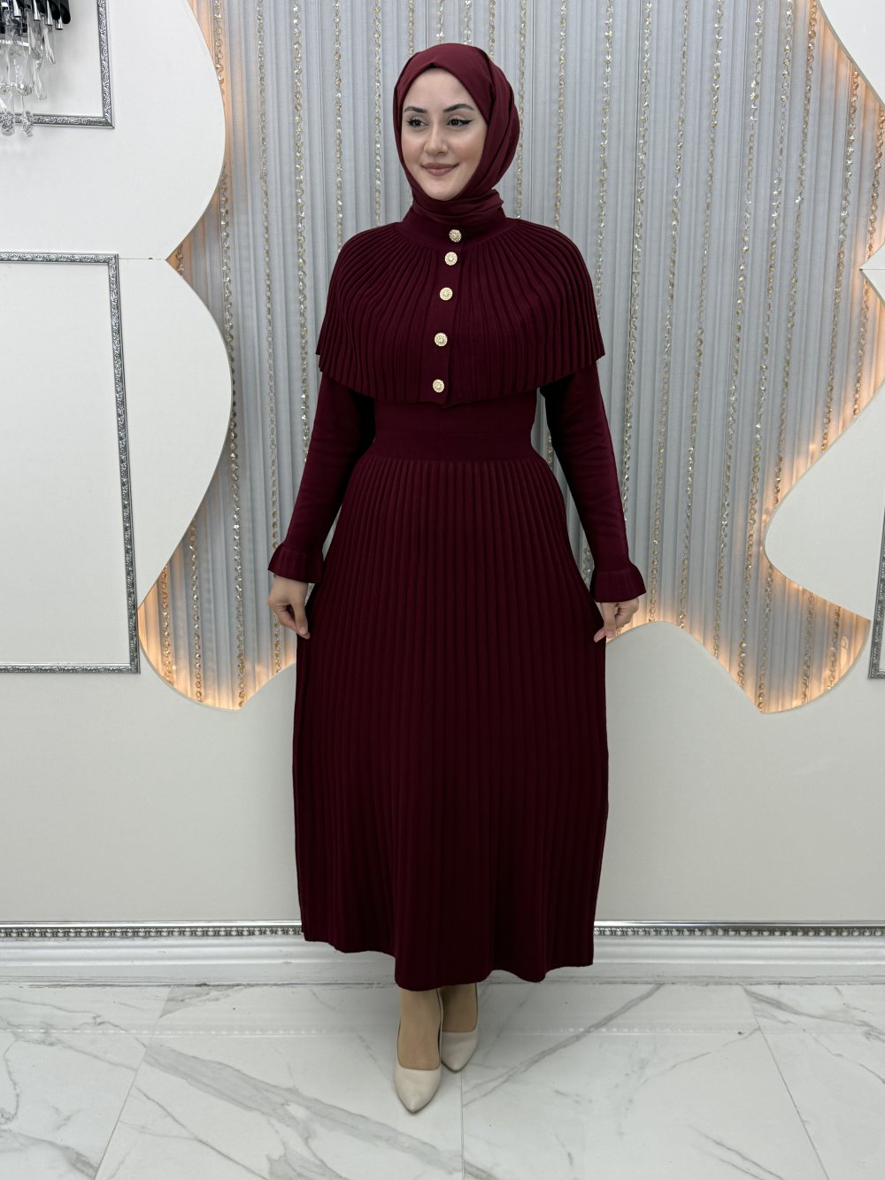 Sümbül Triko Elbise Bordo