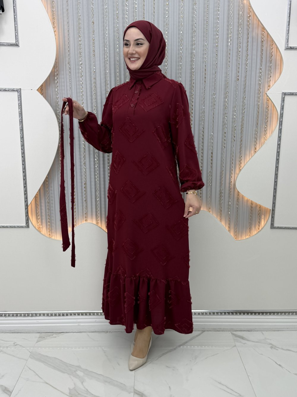 Yelda Elbise Bordo